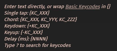 매크로 메뉴 하단에 Basic Keycodes 부분을 클릭하여 연동된 QMK 키 코드 설명 페이지를 참고하시면 됩니다.