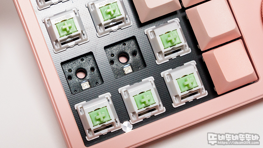 PBT 재질이 사용된 키캡은 살짝 그라데이션이 적용되어 있어 문자열을 구분하는 느낌을 주고요.