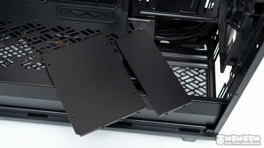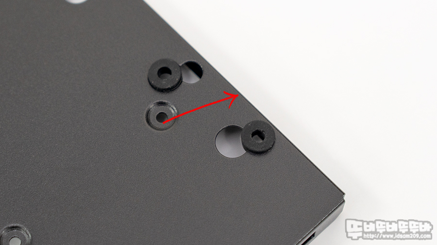 기본적으로 중앙 부분에 SSD 장착 가능한 홀과 사이드 부분에 진동 방지 댐퍼를 이용한 HDD 장착 홀로 구성되어있습니다.