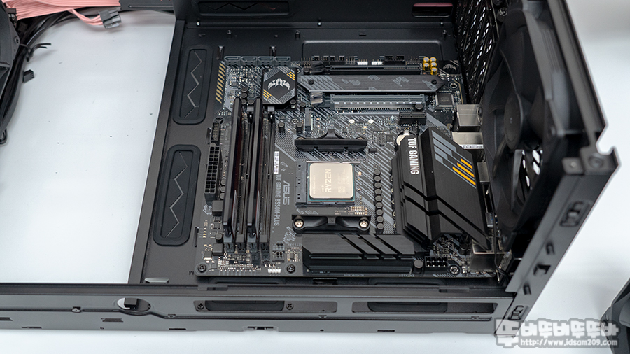 특히 280mm 수냉 쿨러를 상단에 장착 시 ASUS TUF B550M-Plus 메인보드 전원부 방열판 간섭이 있어 라디에이터를 뒤쪽으로 바짝 붙이는 게 불가능했는데 280mm 수냉 쿨러를 상단에 사용 시 메인보드 방열판 간섭여부도 확인이 필요해 보이며 간섭이 있다면 상단이 아닌 샤시 전면 부착하는 것이 효율적일 수 있으니 참고하시기 바랍니다.