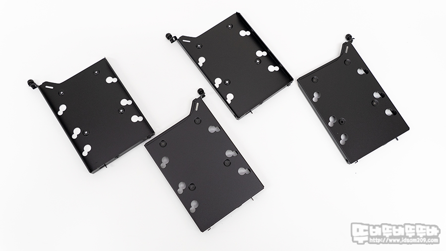진동 방지 댐퍼는 큰 구멍 쪽에 넣어 작은 구멍 쪽으로 이동시킨 후 전용 나사를 이용하여 HDD 결합을 하게 되며 Fractal Design Meshify 2에 장착되는 HDD 조립은 모두 진동 방지 댐퍼를 이용하게 됩니다.