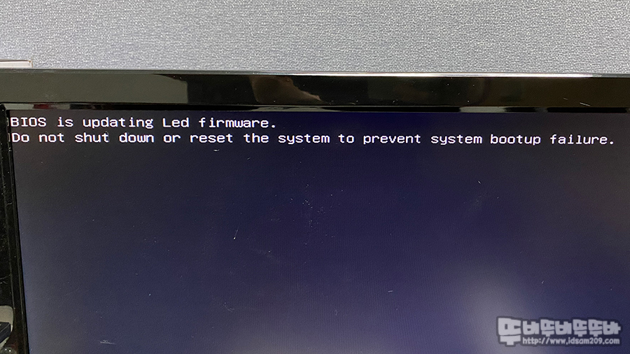 당황하지 말고 이 상태로 잠시만 놔두면 펌웨어 진행 후 바이오스 진입을 하게 됩니다.