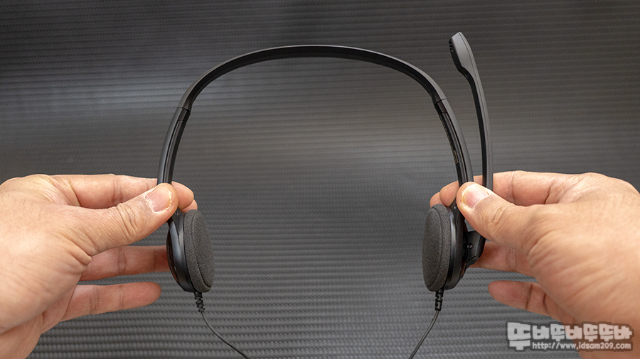 오버이어가 아닌 귓구멍 주변을 커버하는 오프형으로 디자인으로 왼쪽에 회전형 마이크 부착되어있습니다.