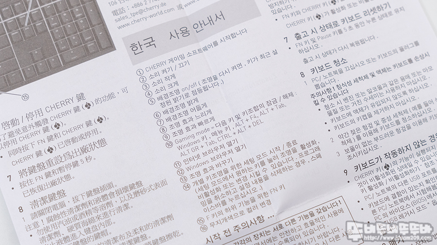 무보강 제품이기에 키보드 사용 중에 음료 침수는 절대적으로 피해야 하며 사용 빈도에 따라 레이저 각인에 때가 타면 각인이 흐리게 보이는 특정을 가진 제품이니 구입에 참고하시기 바라며 체리 MX BOARD 2.0S 무보강 기계식 키보드 리뷰를 마칩니다.