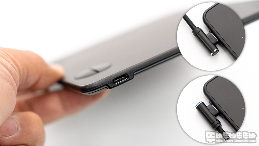 타블렛 측면의 USB-C 단자를 이용하여 컴퓨터와 연결을 하게 되며 제품에 동봉된 USB-C, MicroUSB OTG 젠더를 연결하여 안드로이드 디바이스와 연결도 가능합니다.