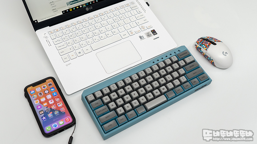 60% 배열의 키보드의 경우 대부분 백스페이스를 Fn 키 조합으로 Del 키로 사용했지만, Fn 키를 사용하지 않고 바로 Del 키를 사용할 수 있는 부분과 별도의 버튼을 눌러 무선 디바이스를 변경할 수 있는 독립적인 멀티 페어링 버튼이 매력적으로 다가왔습니다.