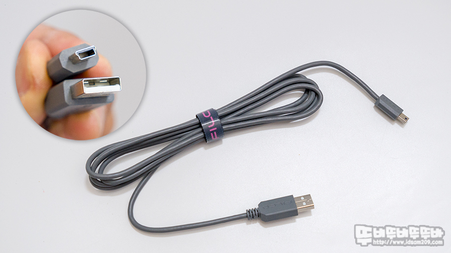 PVC 재질의 탈부착이 가능한 Mini USB to USB-A 케이블 모습.