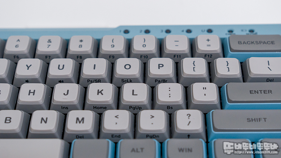 PBT 이중사출이지만 플레이트 표면은 ABS 키캡과 같이 매끈한 타입으로 PBT 까슬까슬한 느낌은 없어 표면을 만져보았을 때 이거 PBT 맞아?라는 생각이 들었네요.