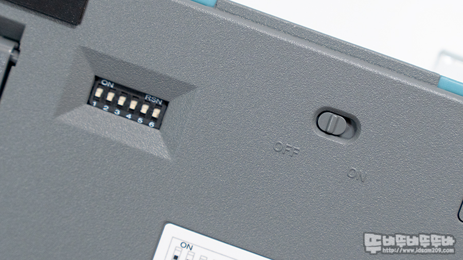 자체 경사를 가지고 있는 디자인이지만 키보드 위쪽에는 멀티 페어링 스위치 내장으로 돌출되게 디자인되어 살짝 레트로 느낌을 주고 있습니다.