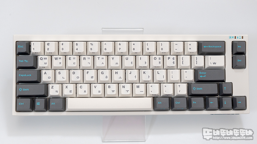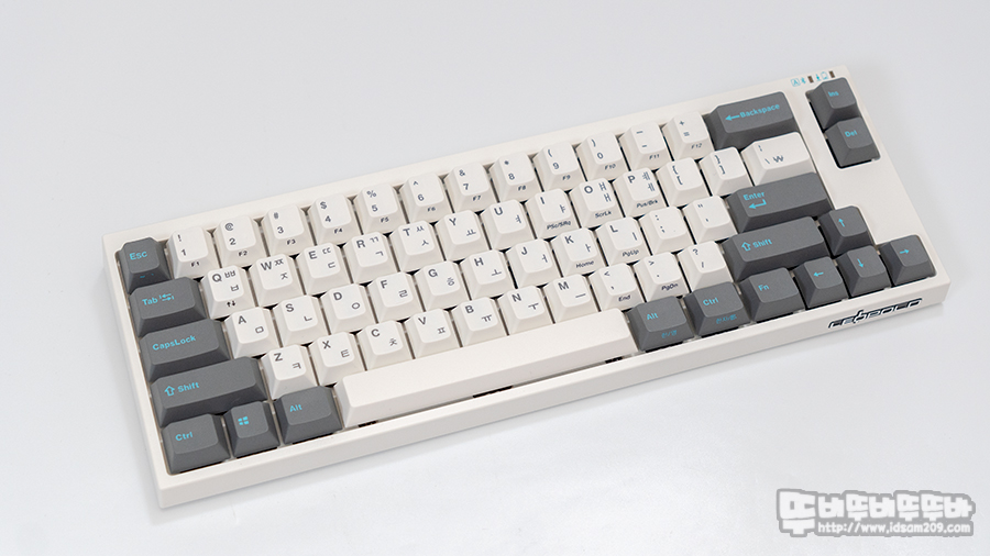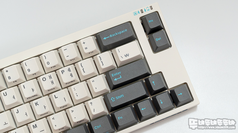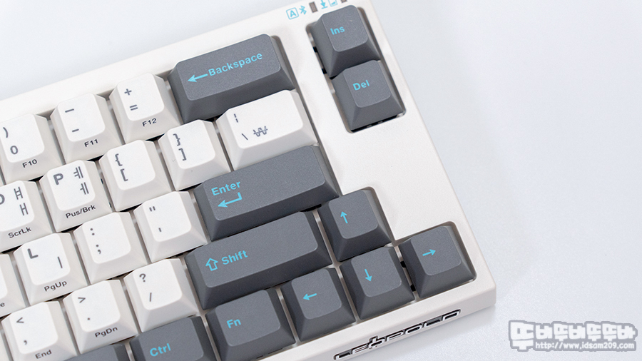 레오폴드 FC660MBT PD 키캡은 PBT 이중사출로 제작된 화이트 베이스의 블랙 각인으로 명도 대비를 그레이 베이스에 블루 계열 각인으로 채도 대비로 각인 폰트의 시각적인 집중력을 높여주고 있는 게 특징입니다.