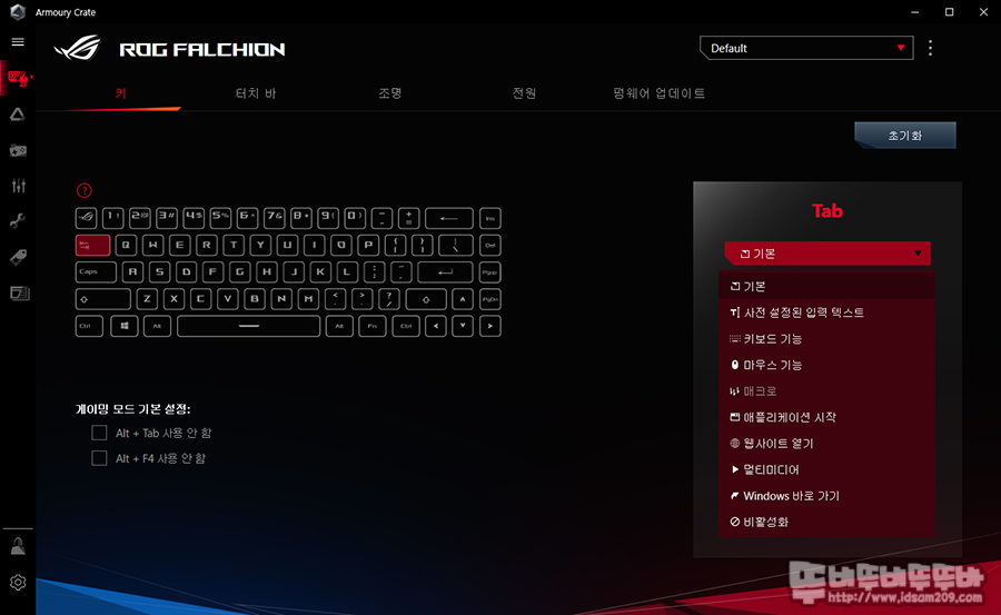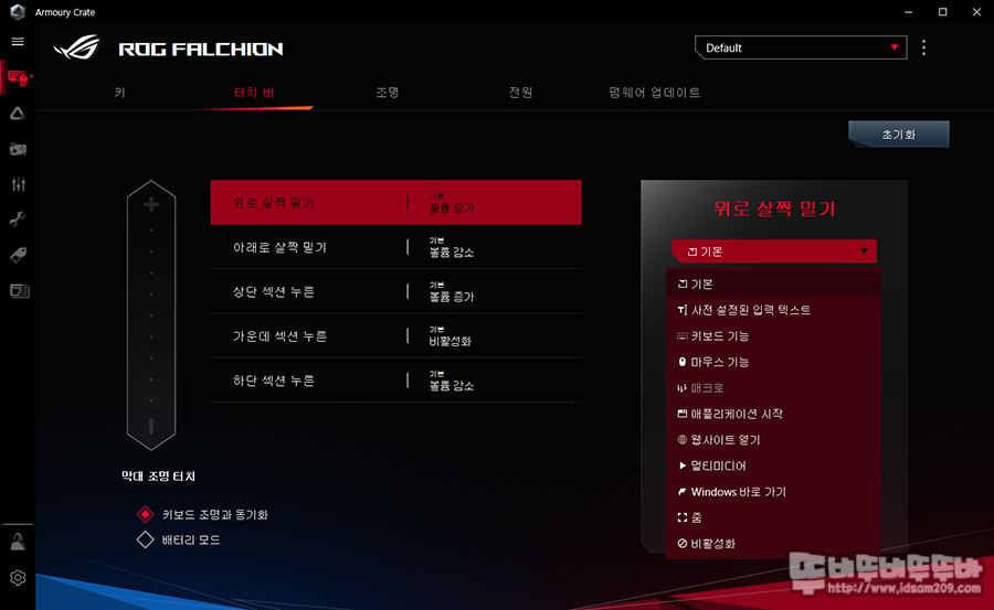 Armoury Crate - 장치 - ROG FALCHION을 선택하면 키보드에 관련된 소프트웨어 정보를 확인할 수 있는데요.