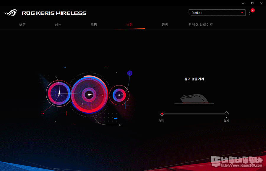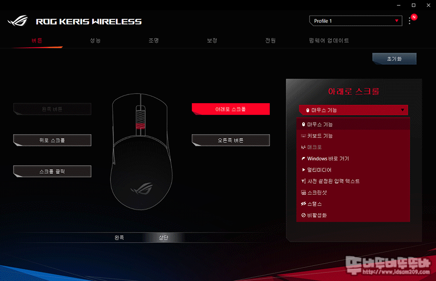 Armoury Crate - 장치 - ROG KERIS 무선 마우스 선택 시 마우스 전용 소프트웨어 정보를 확인할 수 있는데요.