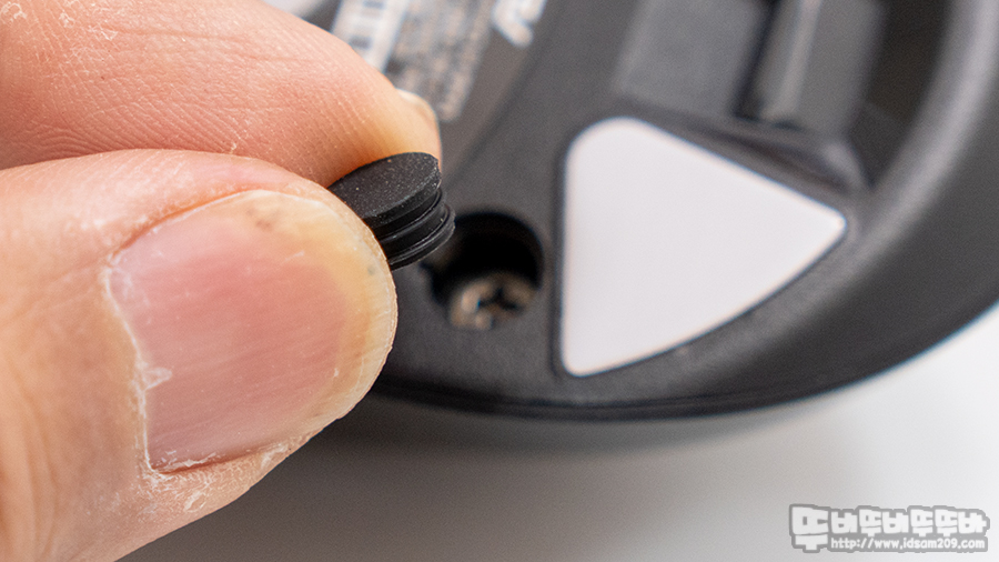 바닥 면에 2개의 고무 캡을 분리하고 고정된 나사를 풀면 마우스 상단 하우징 분리가 가능하며 간편하게 메인 버튼을 자가 교체가 가능합니다.