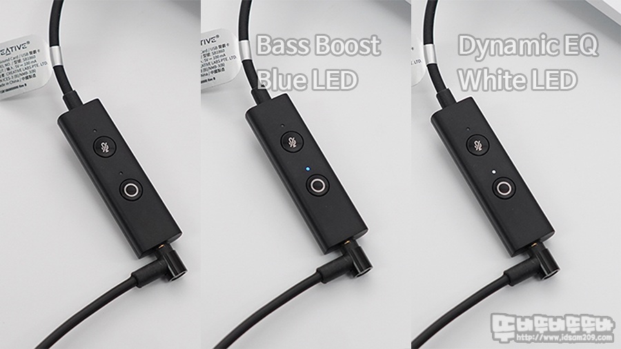 EQ 버튼을 눌러 Bass Boost (Blue LED), Dynamic EQ (White LED)로 사용이 가능합니다.