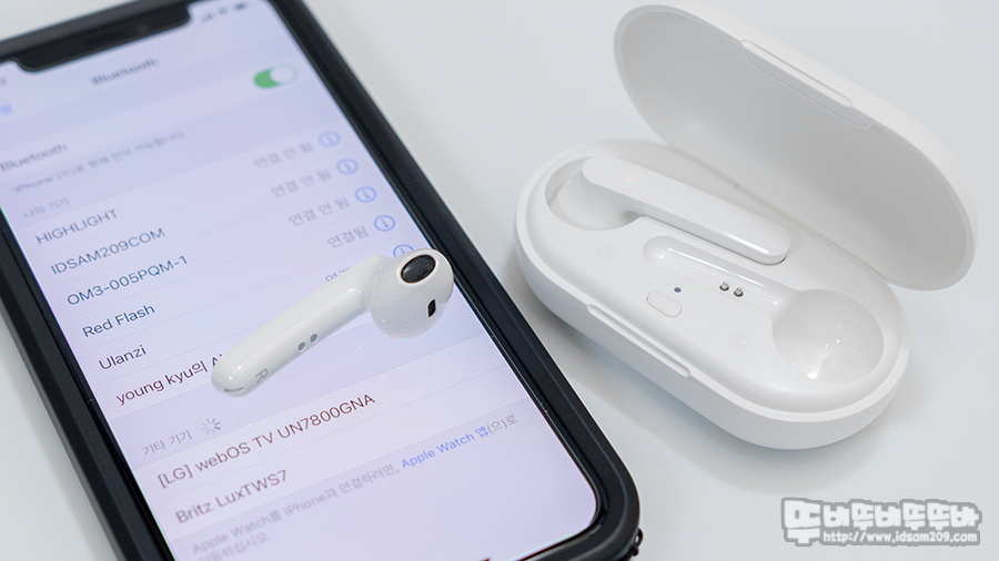 브리츠 LuxTWS7 오픈형 완전무선 블루투스 이어폰의 충전 케이스를 오픈하면 스마트폰의 블루투스 메뉴 나타나는 "Britz LuxTWS7 " 명칭을 선택하면 됩니다.