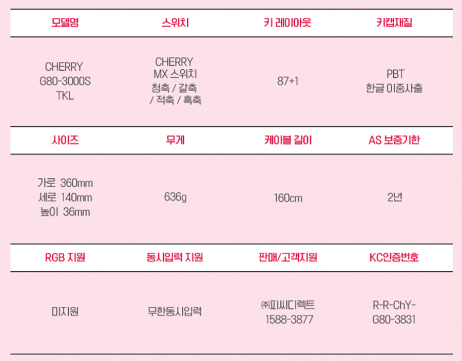 지금까지 체리 CHERRY G80-3000S TKL 무보강 화이트 적축 키보드에 대하여 알아보았습니다.