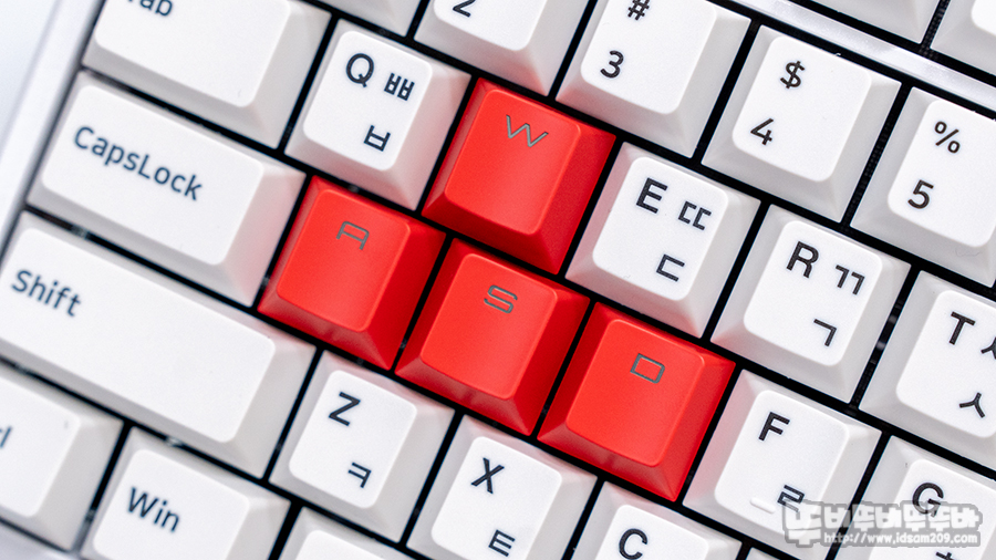 백라이트 LED 투과가 가능한 레드 컬러 ABS 코팅 키캡은 약간 유광 느낌이 있지만 화이트 컬러 키캡과 조합으로는 레드 컬러가 최고인 거 같습니다.
