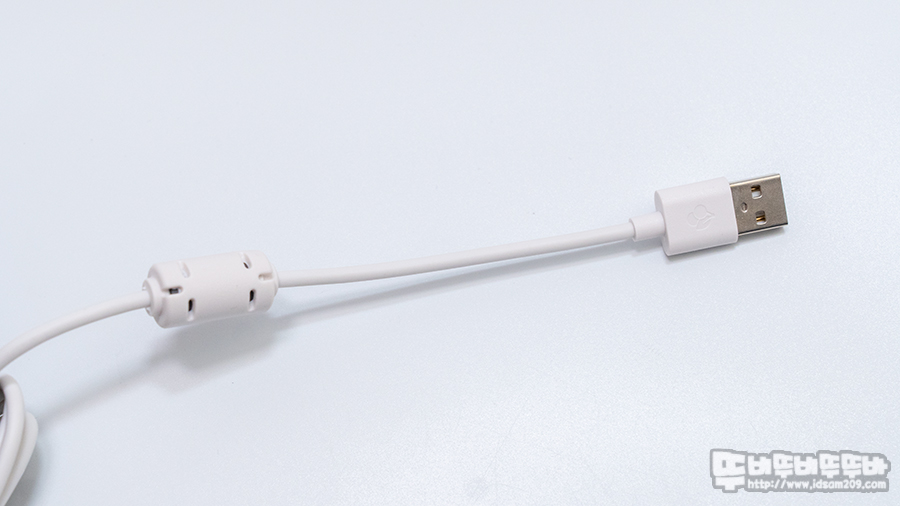PVC 케이블 끝에는 체리 로고가 각인된 몰딩이 사용된 USB 단자와 노이즈 유입을 차단하는 페라이트 코어가 달려 있습니다.