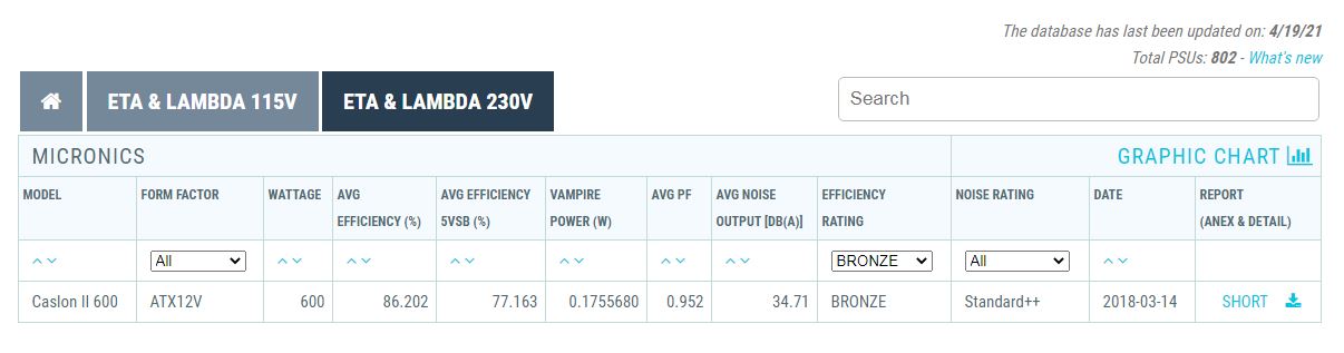 80Plus 230V EU 스탠다드 기준치 보다 최고 5% 이상의 80Plus 브론즈 등급의 성능을 보여주는 제품이며 여기에 Cybenetics 전력 효율 인증 ETA 브론즈와 소음 인증 LAMBDA 스탠다드 획득으로 성능 입증받았다고 합니다.