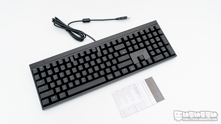 제품 구성은 체리 MX BOARD 2.0S RGB 무보강 기계식 키보드 본체와 사용 설명서로 구성되어있습니다.