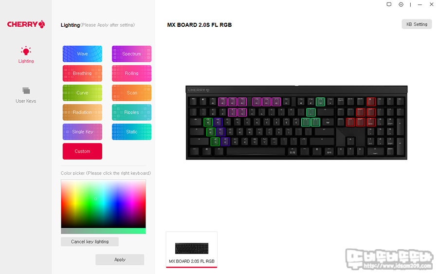 소프트웨어 메뉴는 심플하게 LED 효과를 담당하는 Lighting과 User Keys로 구분되는데요.