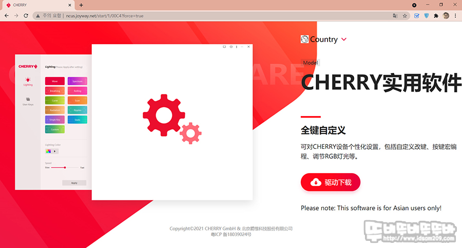 여기에서 중국을 선택 후 우측에 다운로드 버튼을 눌러 " Cherry_Assistant_v2.6.0.1_installer_online " 소프트웨어를 다운받고 실행합니다.