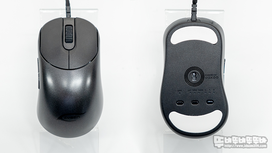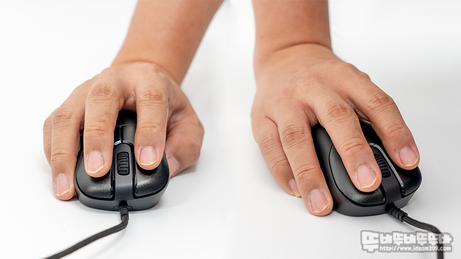 벤큐 조위기어의 마우스를 사용하면 하우징 끝부분이 밑으로 쳐지는 타입으로 손바닥 끝부분이 마우스 끝부분에 올려지는 형태로 꽉 잡히는 느낌이 없지만, ZYGEN NP-01의 경우 끝부분이 두리뭉실하게 말리는 타입이라 마우스 그립 시 꽉 잡히는 느낌을 주는 편입니다.