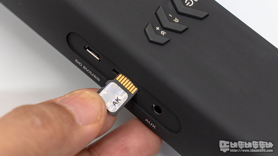 TF Card에 메모리에 저장된 MP3 파일을 블루투스 제어와 동일하게 볼륨, 트랙, 재생/일시 정지 등 제어가 가능하며 매뉴얼이나 인터넷 상의 상세 설명에 언급은 없지만, 대부분의 TF Card 지원 제품과 동일한 최대 32GB 용량까지 사용이 가능할 거로 판단되네요.