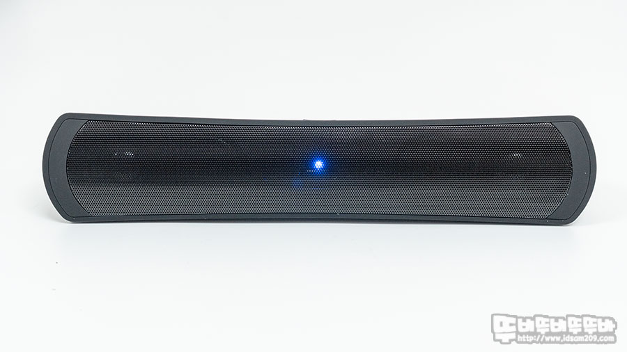 완충된 스피커는 50% 볼륨으로 사용 시 최대 3시간 사용이 가능하며 스피커 그릴 전면에 Blue LED가 점멸하며 작동 상태를 알려줍니다.