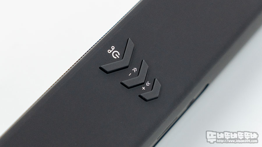 제품 상단 중앙에 위치한 3 버튼 컨트롤러는 멀티펑션 버튼으로 전원 On/Off, 재생/일시 정지, 전화 통화 / 끊기, +,/- 버튼으로 짧게는 볼륨, 길게는 트랙 이동이 가능합니다.