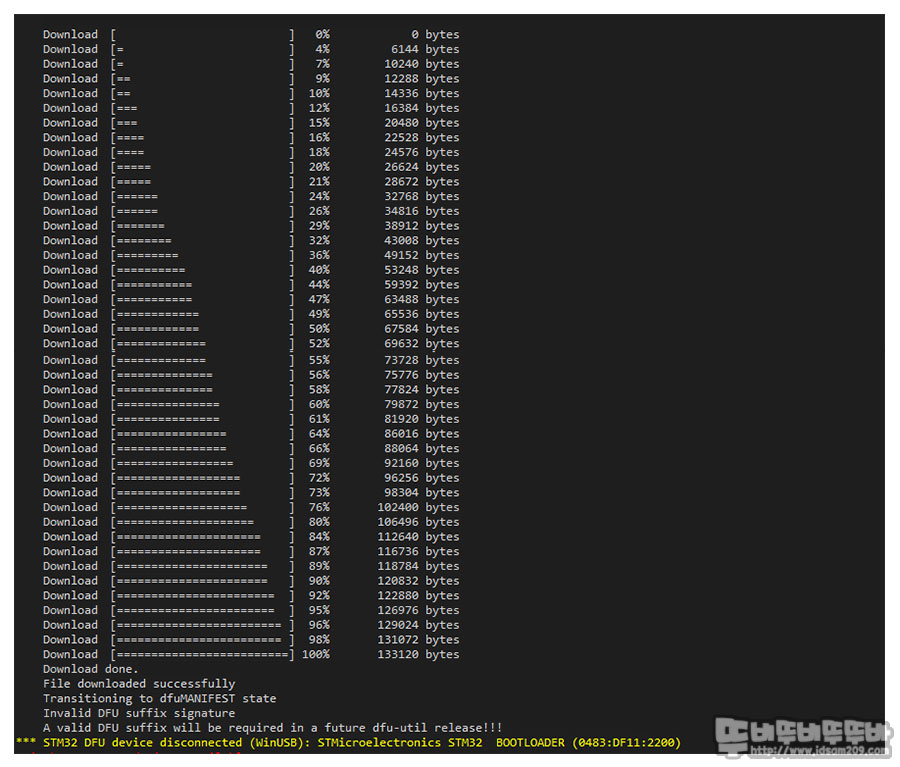 부트로더가 정상적으로 실행되면 노란색 글씨로 장치 연결 (device connected)과 Bootloader로 연결되었음을 표시합니다.