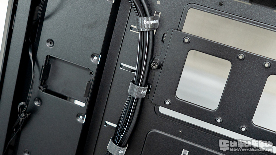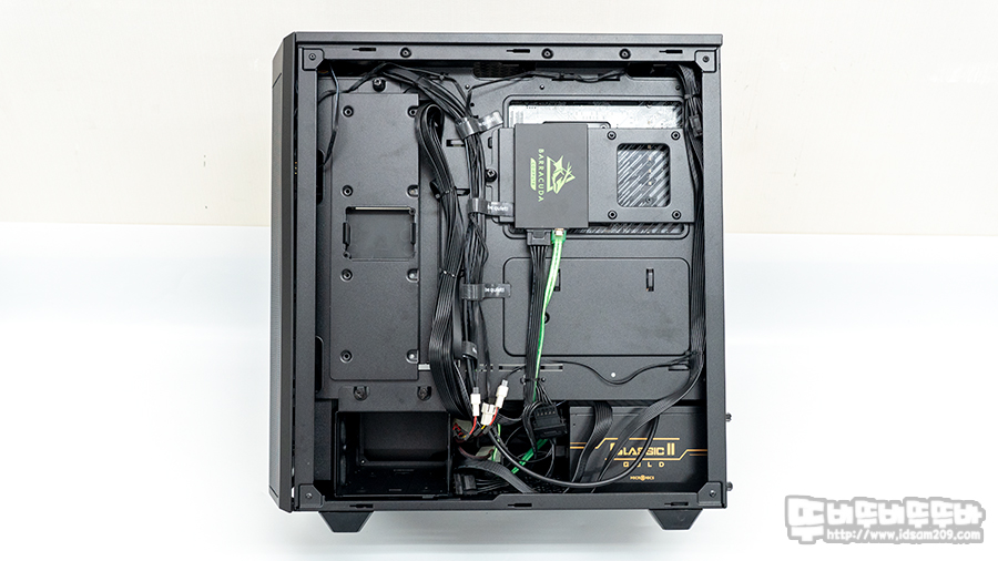 샤시 후면에는 벨크로 타이를 기본으로 제공하며 케이블 타이를 이용한 고정이 가능한 마운트가 곳곳에 돌출되어있어 케이블 정리가 한결 깔끔하게 정리할 수 있었습니다.