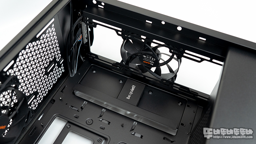 샤시 상단에는 120mm 또는 140mm 쿨러 2개 구성 또는 120 / 240mm 수냉 쿨러를 지원하며 기본으로 140mm PURE Wing 2 쿨러가 장착되어있습니다.