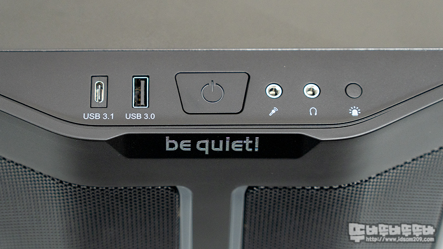 be quiet PURE BASE 500DX 케이스 포인트인 전면 베젤은 중앙에 LED 라인을 기준으로 양쪽에 메시로 디자인된 베젤은 안쪽에 LED 빛 확산과 관련 장치가 보이지 않게 커버를 사용하였고 분리되는 베젤을 위해 LED 관련 케이블은 접점을 이용한 연결 구조로 디자인하여 베젤 분리 시 케이블에 대한 걱정 없이 마음껏 분리할 수 있고요.
