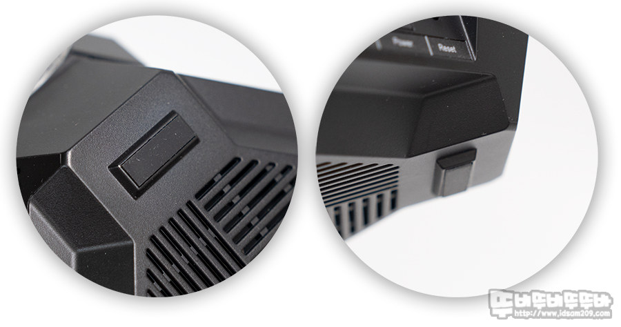 바닥면에 부착된 두툼한 패드는 미끄럼 방지와 공유기를 일정 높이로 띄워 공유기 바닥면에 공기 유입이 가능하게 도움을 줍니다.