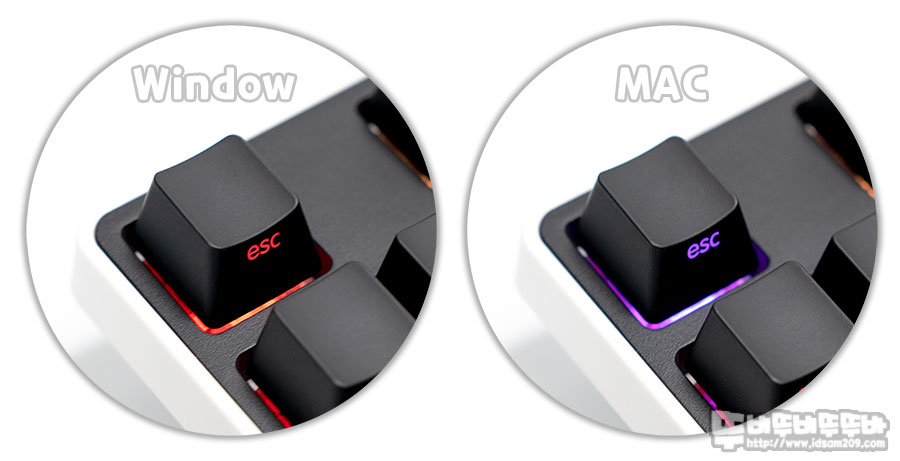 이전 모델인 마르스프로 MK3까지만 해도 N키 모드와 6+1키 모드 그리고 MAC OS 선택으로 ESC 키의 LED 라이팅 변화를 표현했지만, 이번 모델에서는 Window/Mac 운영체제 선택에 따른 LED 라이팅만 확인할 수 있습니다.