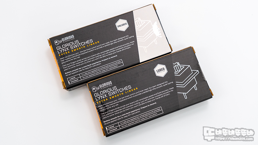 글로리어스(Glorious) 링스(Lynx) 리니어 스위치는 Lubed(윤활)과 Unlubed(비 윤활) 형태의 제품 판매로 유저들에게 행복한 선택을 폭을 제공하고 있는데요.