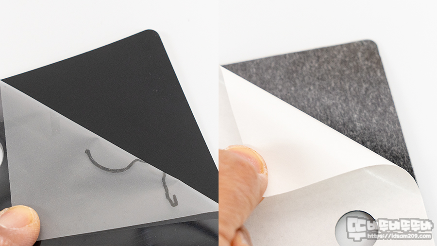 미끄럼 방지 패드는 앞면에는 패드를 보호하는 필름, 뒷면에는 양면테이프를 보호하는 필름이 부착되어 있으니 이를 제거하고 사용하시기 바랍니다.
