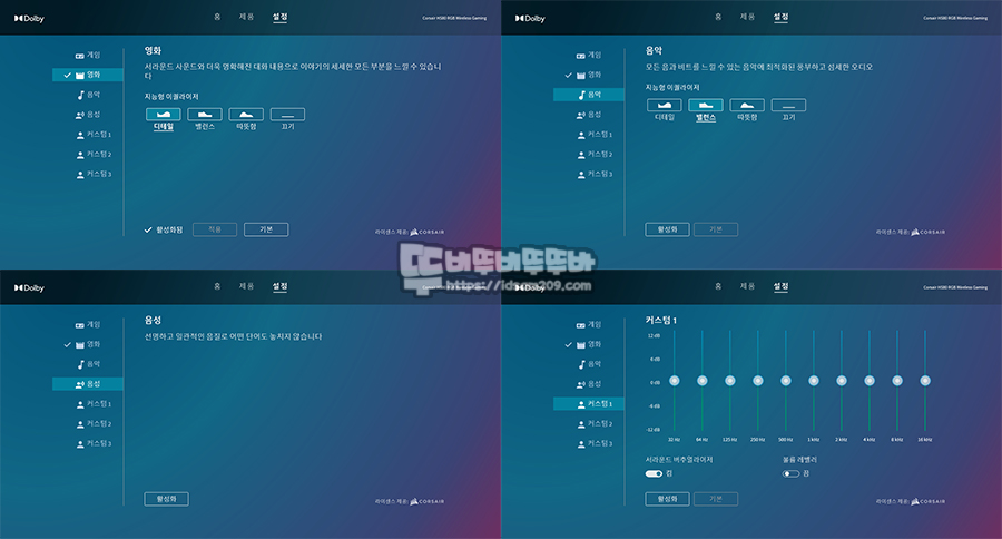 돌비 애트모스를 사용하는 경우 iCUE의 EQ 설정 사용이 불가능하니 참고하세요.