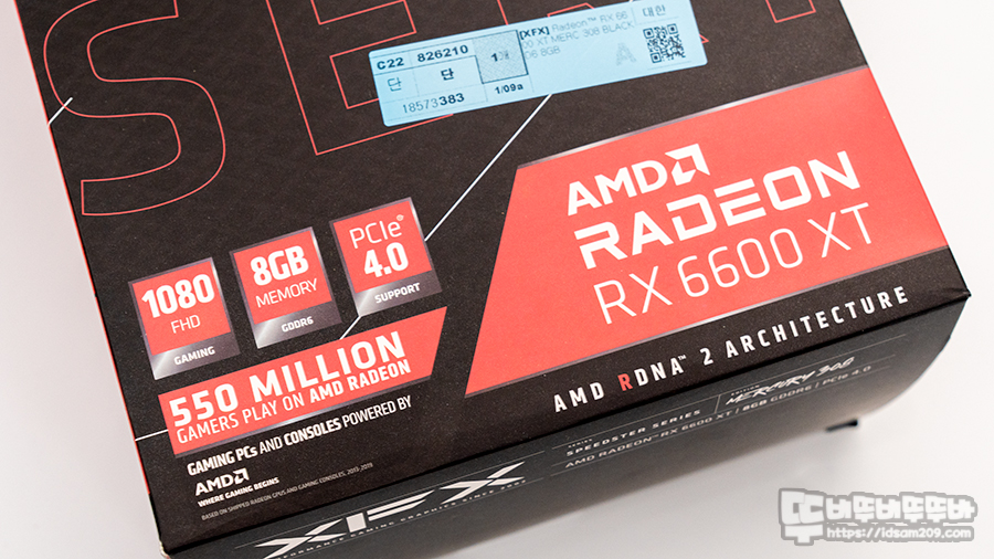 11월에 컴퓨존으로 통해서 80만원대 초반가격에 힘들게 구입한 XFX 라데온 RX 6600 XT MERC 308 BLACK D6 8GB입니다.