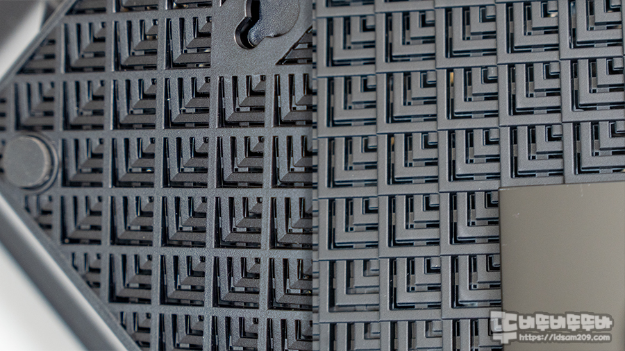 하우징 윗면과 바닥면의 공기 흐름을 위한 타공 디자인 모습.