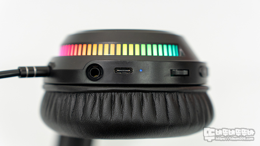 그 외로는 볼륨 다이얼과 USB-C 충전 겸 유선 사용 연결 단자, 3.5mm 스테레오 단자 그리고 마이크 입력 단자로 구성되어있습니다.