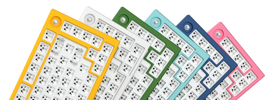 이번에 출시된 GMMK PRO TOP FRAMES은 전기영동이 적용된 Golden Yellow와 E-White 그리고 알루미늄에 흔하게 사용되는 아노다이징이 적용된 Forest Green, Aqua Blue, Navy Blue, Prism Pink로 출시되었습니다.