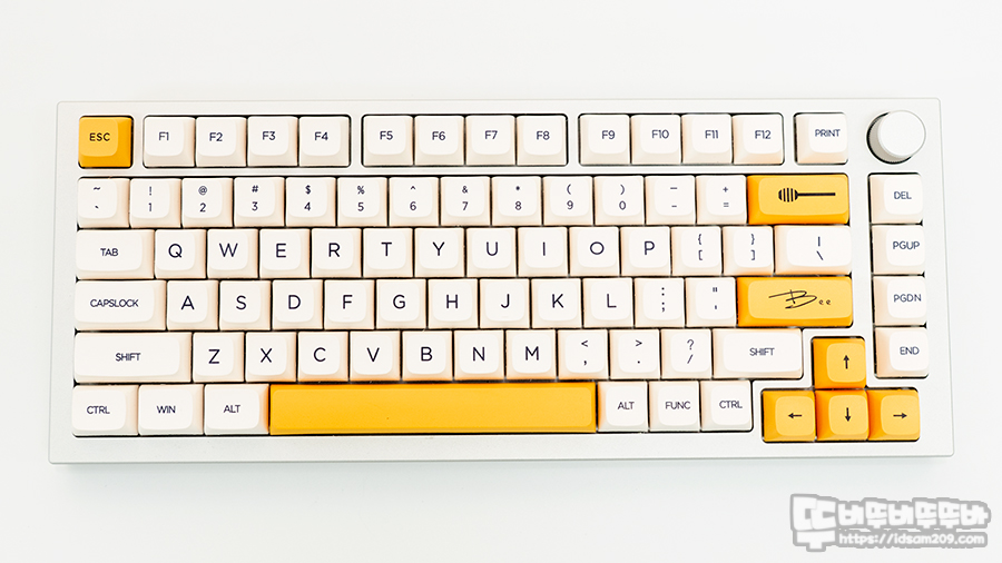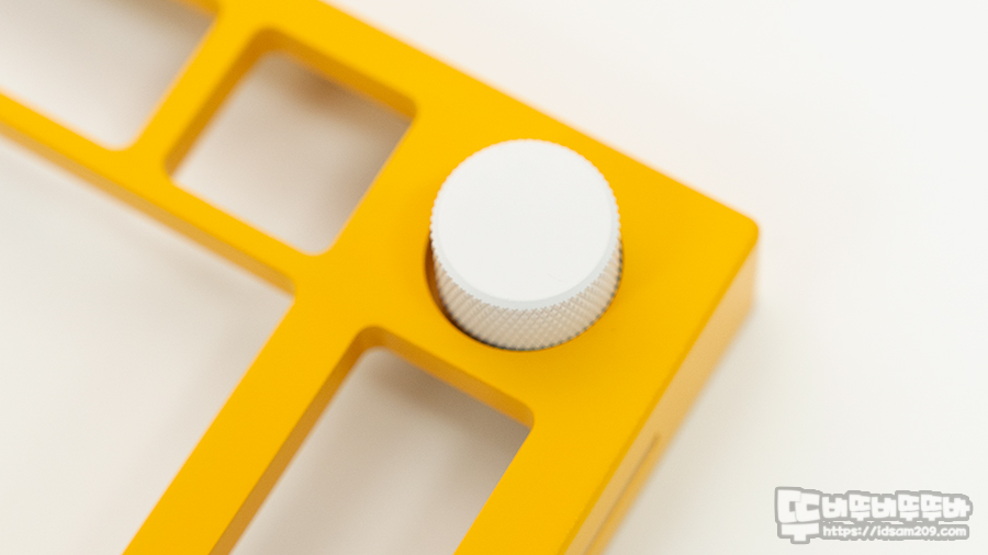 볼륨 노브도 탑 프레임과 같은 컬러로 했으면 좋았을 텐데.... 노란색의 보색으로 Blue 계열을 선택하려고 했다가 현재 사용 중인 키캡 컬러를 생각하여 E-White로 선택을 했는데요.