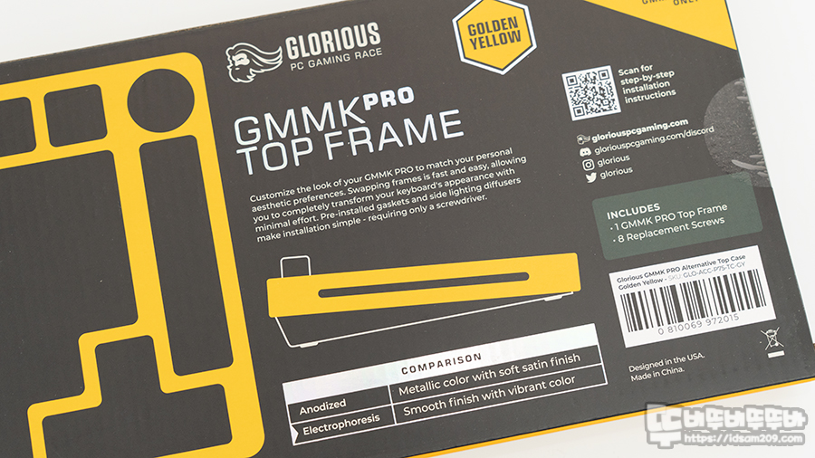 글로리어스 GMMK PRO TOP FRAMES (Golden Yellow) 패키지 모습입니다.