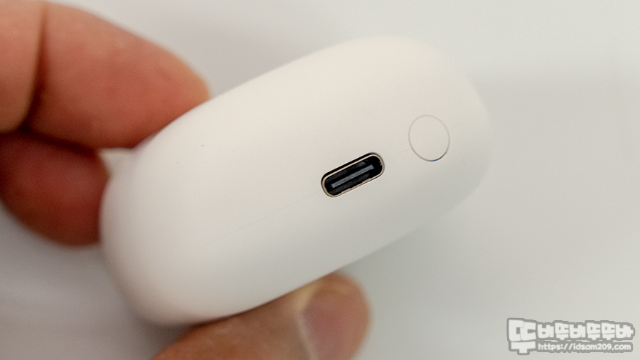 리뷰를 하는 과정에서 살짝 불편한 점이 있다면 이어폰의 디자인 둥글둥글한 곡면을 사용하고 있어서 그런지 건조한 손으로 이어버드를 꺼낼 때 한 번에 쑥 하고 꺼내지지 않는 부분이 있네요.