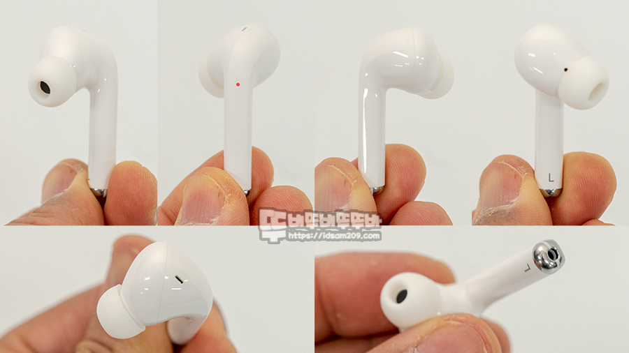 ↑ 왼쪽 이어버드, ↓ 오른쪽 이어버드 모습.