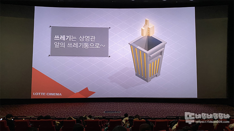 롯데시네마 수퍼G 상영관은 양쪽 사이드 좌석에서도 균등한 화면 밝기로 감상이 가능하지만 스크린이 한쪽으로 쏠린 상태로 관람하게 되니 가급적 중앙 위치를 예매하시는 게 좋습니다.