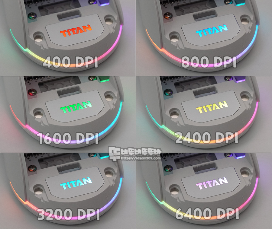 TITAN 로고에 표현되는 DPI LED 모습. (기본 설정값)