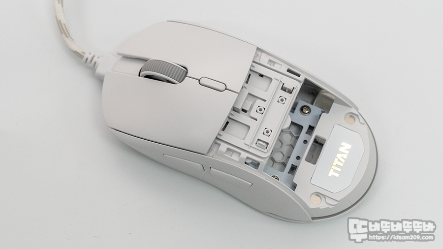 버튼 커버를 분리 시 경량화를 위해 베이스 하우징도 타공이 적용된 것을 확인할 수 있는데 버튼 커버는 분리 및 장착이 쉽지 않은 관계로 가급적 분리하지 않는 걸 추천드립니다.